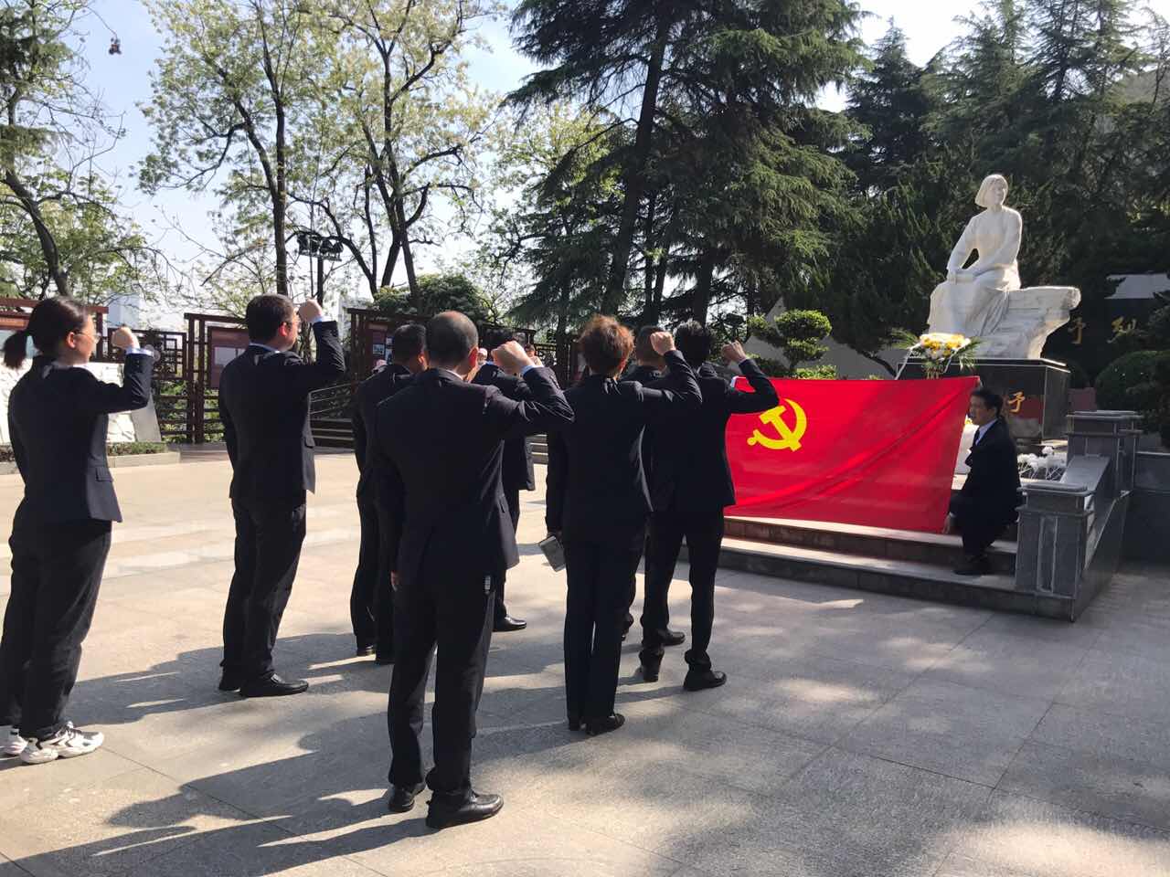 早上9:00到達向警予烈士陵園,整座陵園依山傍水,綠樹環繞,莊嚴肅穆。全體黨員干部依次上前鞠躬、敬獻花籃,靜靜瞻仰烈士紀念碑。