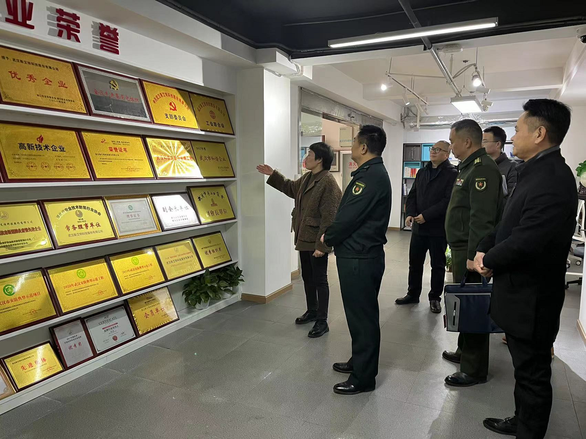 2023年12月29日,武漢市硚口區(qū)人民武裝部部長陳登朧一行,在長豐街道人民武裝部部長鄒敬碩的陪同下蒞臨我司考察指導(dǎo),并就民兵編組工作進(jìn)行了調(diào)研和部署。公司董事長兼總經(jīng)理張濤、副總經(jīng)理張厚元、行政人事部總監(jiān)向麗等人熱情接待。