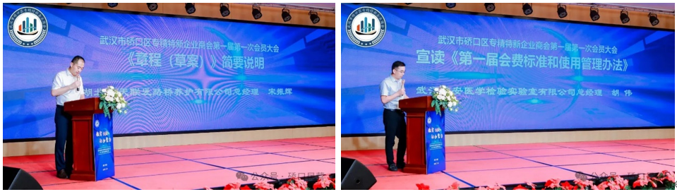 會上,商會籌備組組長、武漢斯艾特科技股份有限公司董事長張濤受大會委托,作商會籌備工作報告;籌備組副組長、湖北楚天聯發路橋養護有限公司總經理宋振輝作了《章程(草案)》簡要說明;籌備組副組長、武漢迪安醫學檢驗實驗室有限公司總經理胡偉宣讀了《第一屆商會會費標準和使用管理辦法》。