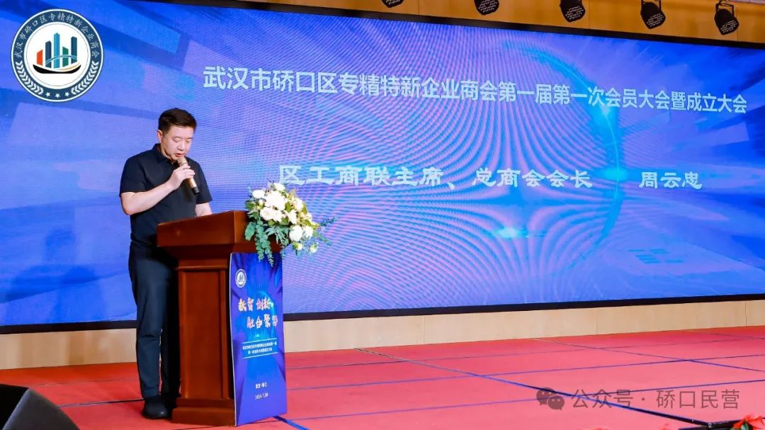 7月30日下午,武漢市硚口區專精特新企業商會第一屆第一次會員大會暨成立大會在武漢凱景酒店順利召開。武漢市工商聯副主席劉冬、區委常委、統戰部部長姚碧波、區政府副區長孫嘉出席會議,區老領導蔡海雄、李服務、陳勇出席會議。區民政局、區行政審批局、區發改局、區經科局、區財政局、區商務局、區工商聯等相關部門負責人和14家友好商協會、6家銀行、區內專精特新企業代表等共計150余人參加會議。