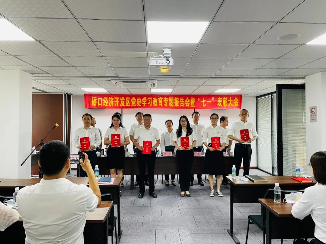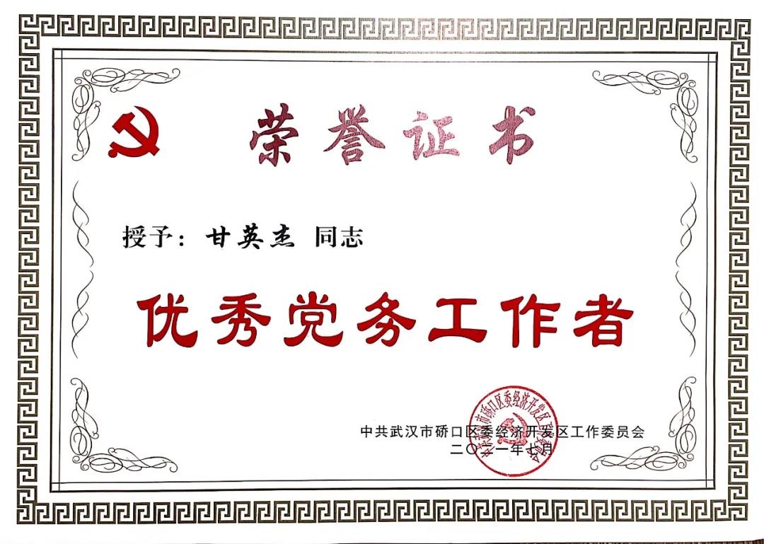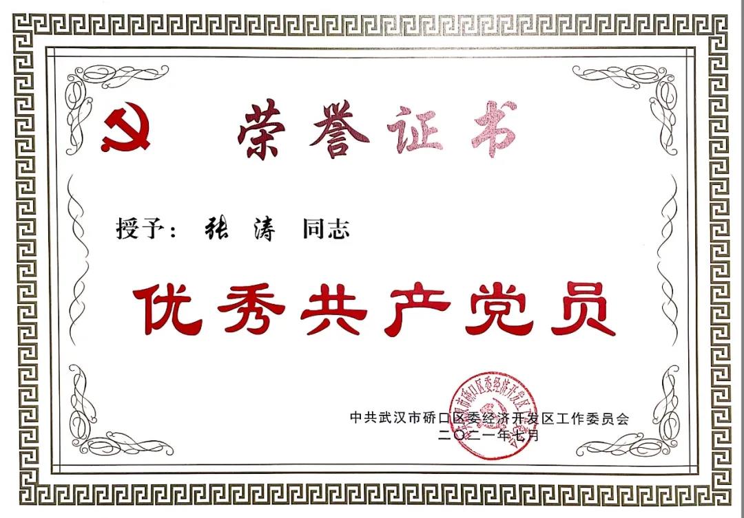 下午15時,大會正式開始,全體起立,共唱國歌。紀工委書記章國偉宣讀《硚口經濟開發區黨工委關于表彰優秀共產黨員、優秀黨務工作者和先進基層黨組織的決定》。20余名共產黨員、10余名黨務工作者、近10個基層黨組織,分別被授予硚口區委經濟開發區“優秀共產黨員”、“優秀黨務工作者”、“先進基層黨組織”榮譽稱號。開發區黨工委班子成員及其他領導為獲獎者代表頒發榮譽證書和獎牌,會場響起熱烈掌聲。我司支部張濤同志、趙俊同志分別榮獲“優秀共產黨員”稱號;甘英杰同志榮獲“優秀黨務工作者”稱號。