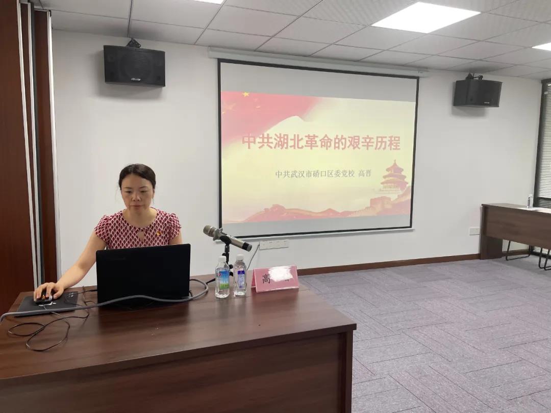 最后由區委黨校講師高晉作專題輔導報告。高老師為我們講授了《中共湖北革命的艱辛歷程》,以“我們黨的一百年,是不忘初心、牢記使命的一百年,是篳路藍縷、奠基立業的一百年,是創造輝煌、開辟未來的一百年”為開端,內容生動詳盡,為我們再現了一段輝煌的百年革命歷史。